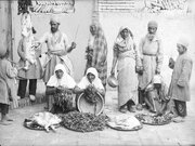 در این عکس فخرالتاج معیری دختر عصمت‌الدوله و نوه ناصرالدین‌شاه قاجار در کنار تعدادی از اعضای خانواده‌اش در حال آماده‌سازی مواد ترشی به تصویر کشیده است.